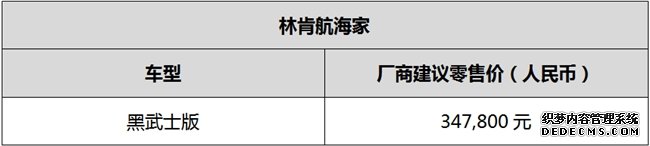 · 第十九届北京国际汽车展览会上,“全路况豪华游艇”——林肯航海家黑武士版正式上市,厂商建议零售价347,800元。